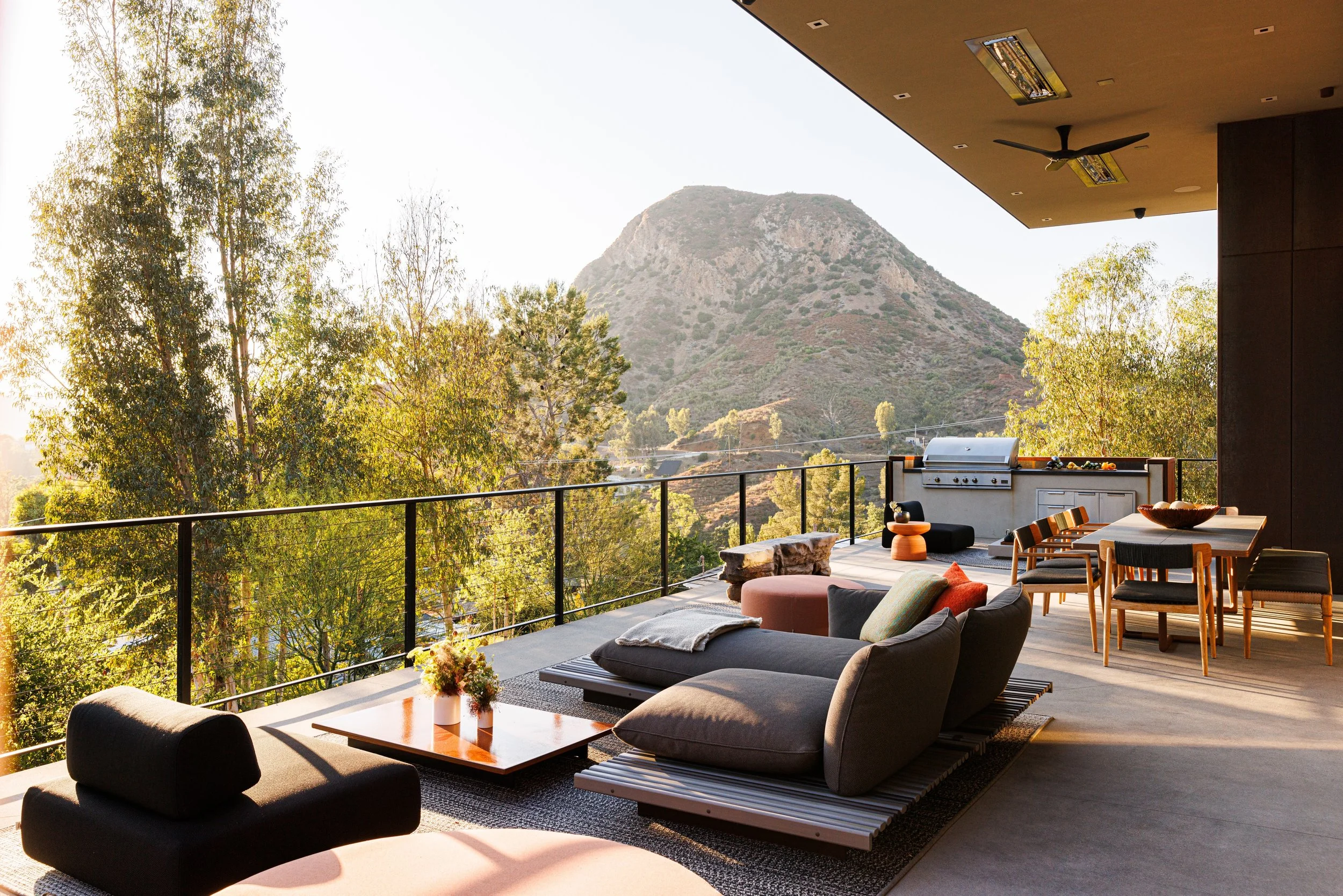 After a Malibu Lake couple lost their house in the 2018 fires, they made the powerful decision to rebuild on the site of their former home. After collaborating closely on the new design and construction with architect Christofer Mercier of f.e.r. studio in Los Angeles, television composer Gary Scott and his wife, Laurie Schireson, were creatively exhausted and emotionally spent. The next step was finding a designer who had the design vocabulary and artistic sensitivity to complete the vision for the interior and exterior spaces. Schireson says, “Our first meeting with Sophie was transformative—her talent and personality resonated deeply with us. Once we found her, we could not have been more impressed. We were blown away by the beauty and professionalism of the design books she and her team created.”